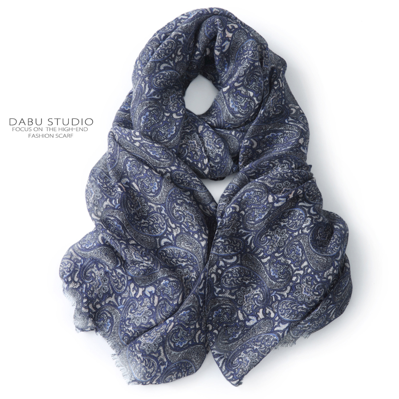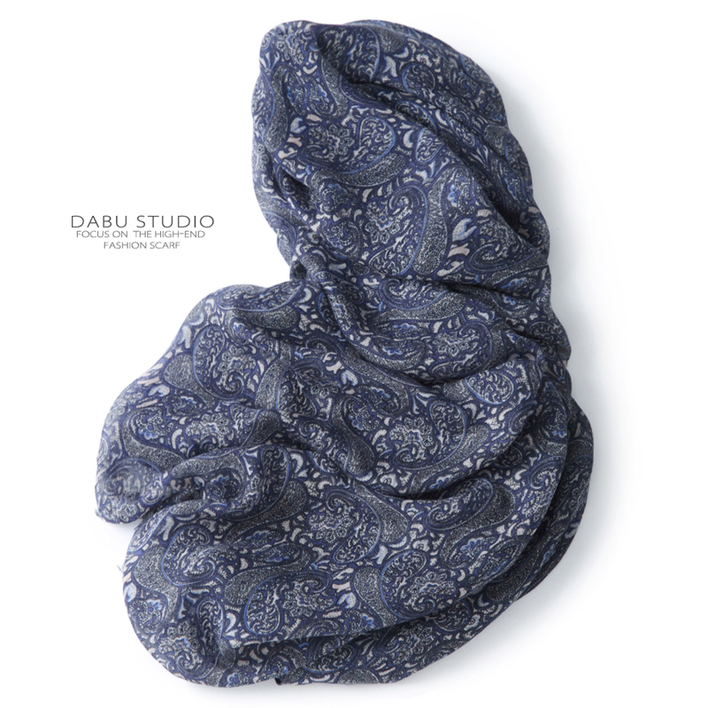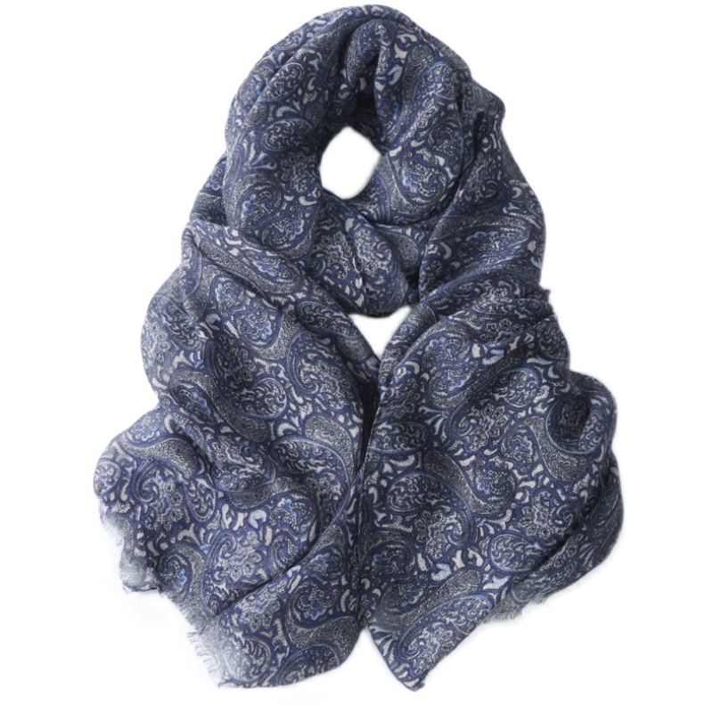 披肩设计,修饰手臂线条,精致图案,时尚感十足,纯棉材质,穿着舒适透气,藏蓝色的围巾,清新自然,个性时尚。