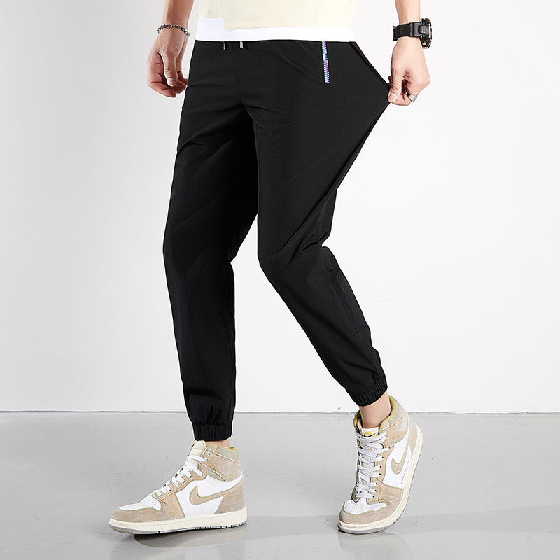 简约的一款九分束脚裤,休闲范十足,九分裤的版型很是显瘦,而且还能够凸显长腿的线条。