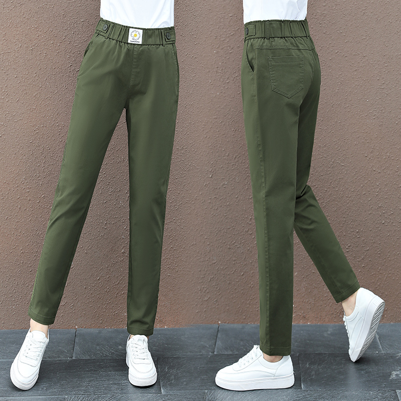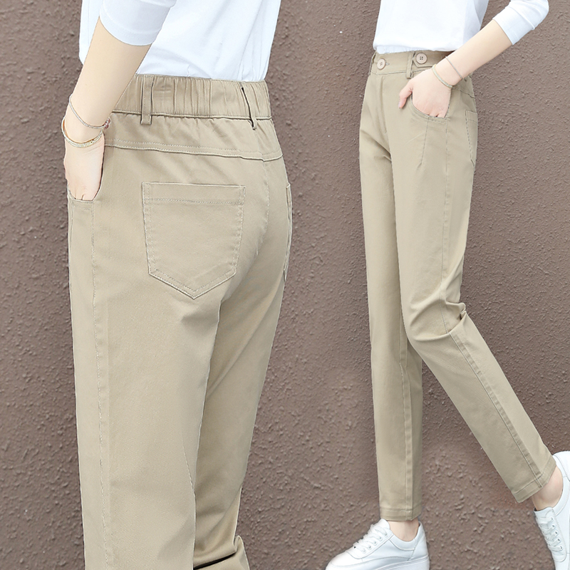 高腰的设计,拉长腿部线条,显瘦效果很好,高腰的版型,很显高挑,修身的剪裁,修饰腿部曲线,上身很有范。