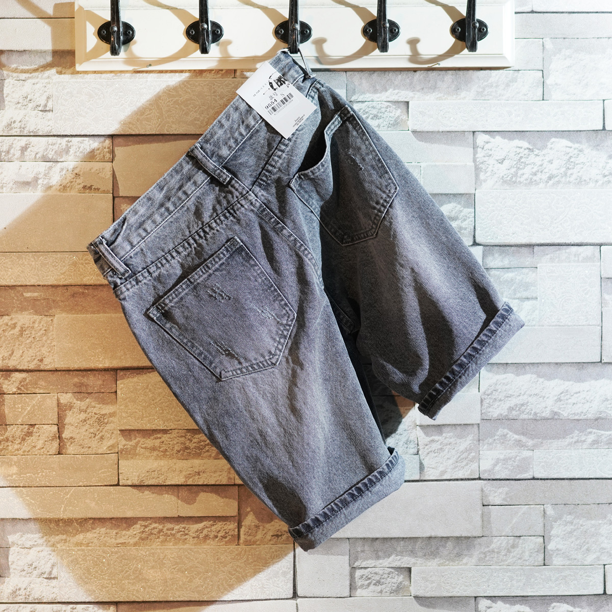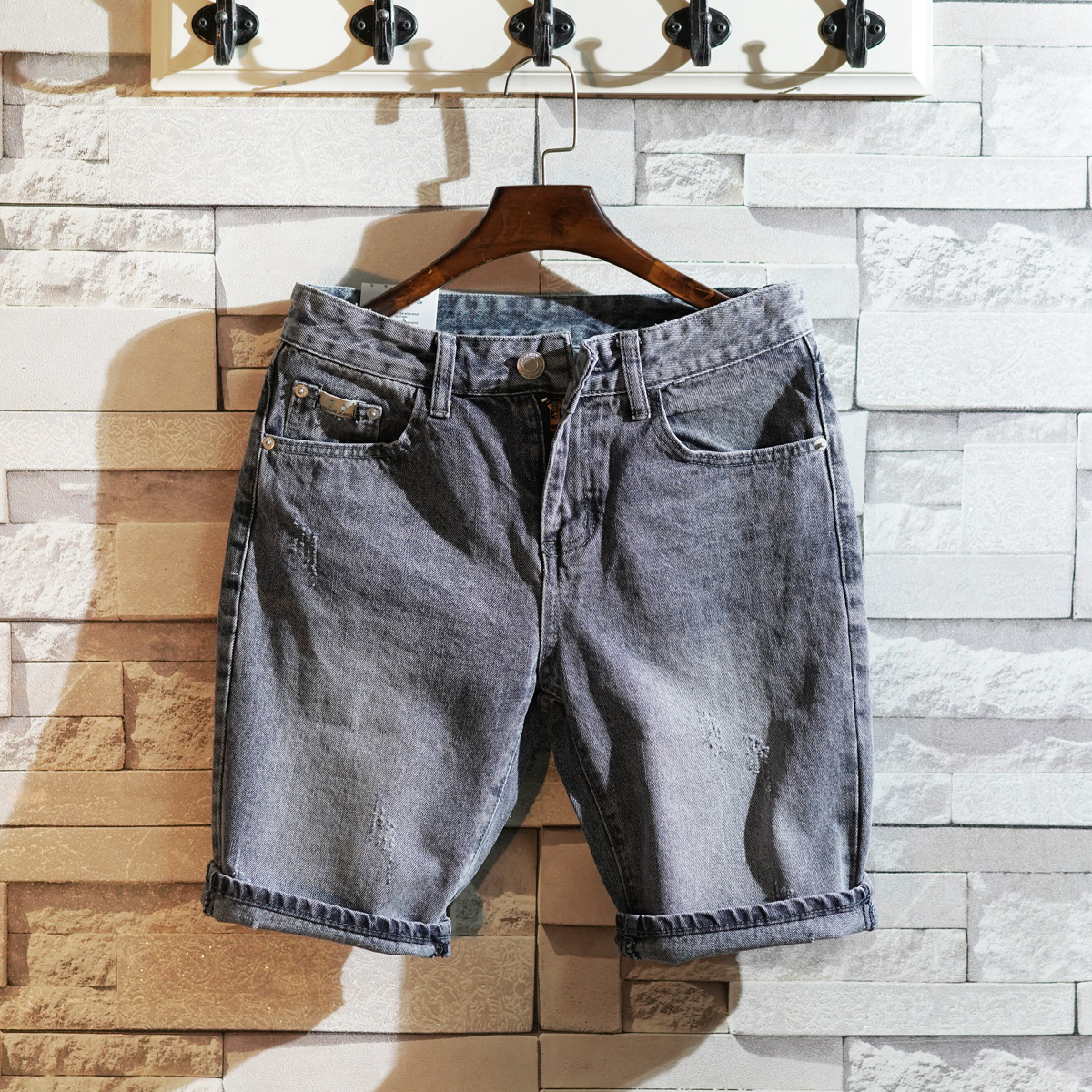 此款纯色的一款牛仔五分裤,裤长的版型剪裁,展现出一款帅气十足的潮男形象,精选优质的棉面料,手感极佳,吸汗透气,穿着清爽舒适。