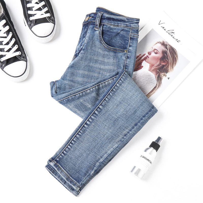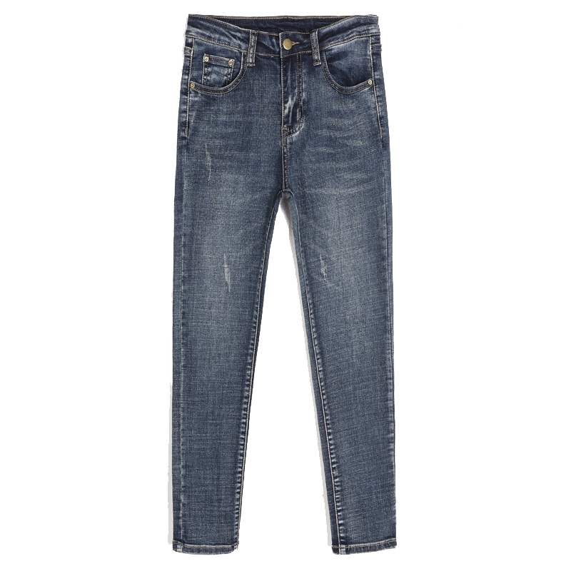 紧身的版型,上身显瘦又显高,小脚设计,修饰腿部线条,高腰牛仔裤,穿出大长腿,休闲时尚。