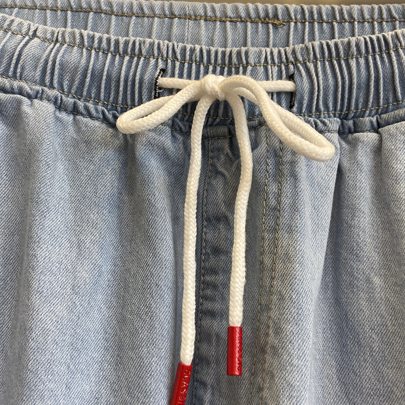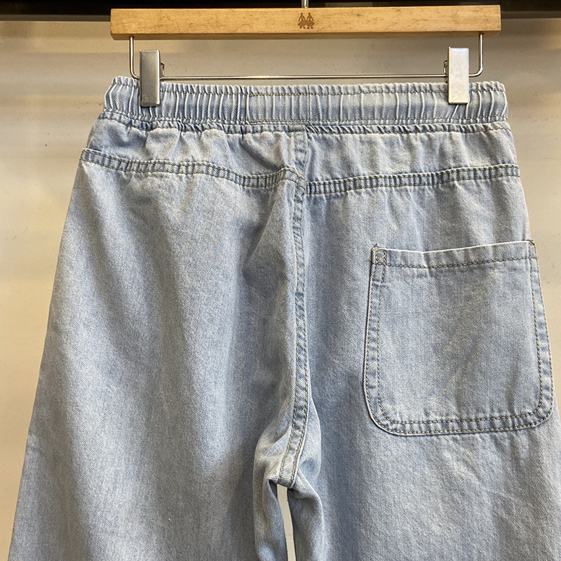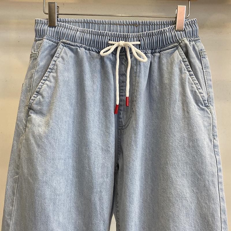 高腰设计,拉长身材比例。高腰牛仔裤,显瘦显腿长。直筒裤型,修饰腿部线条。