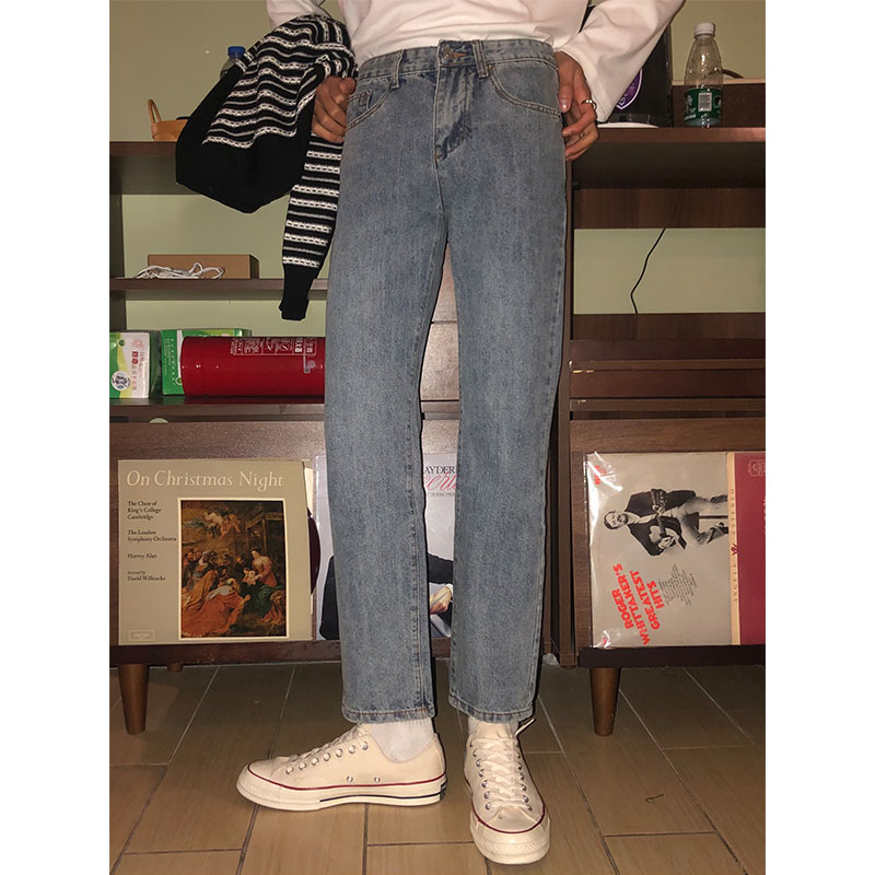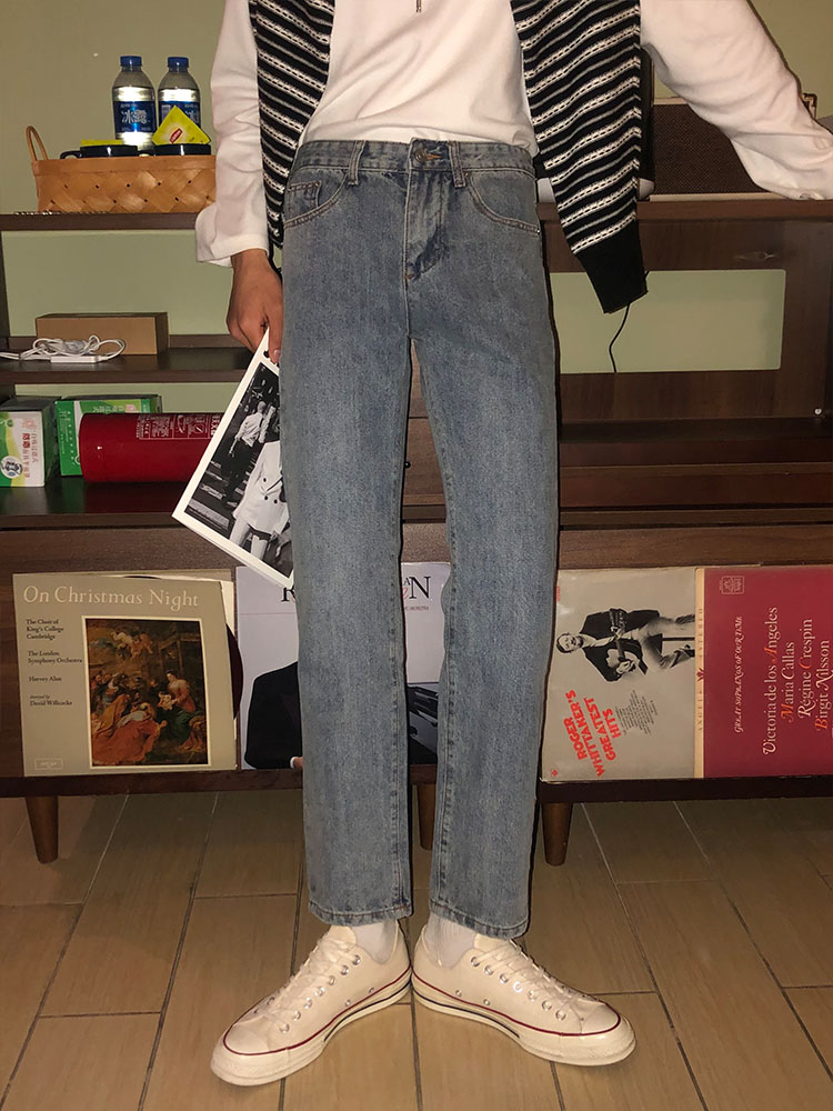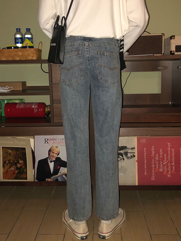 直筒裤型,修饰腿部线条,修身设计,凸显身材比例,牛仔裤,穿着舒适不紧绷。