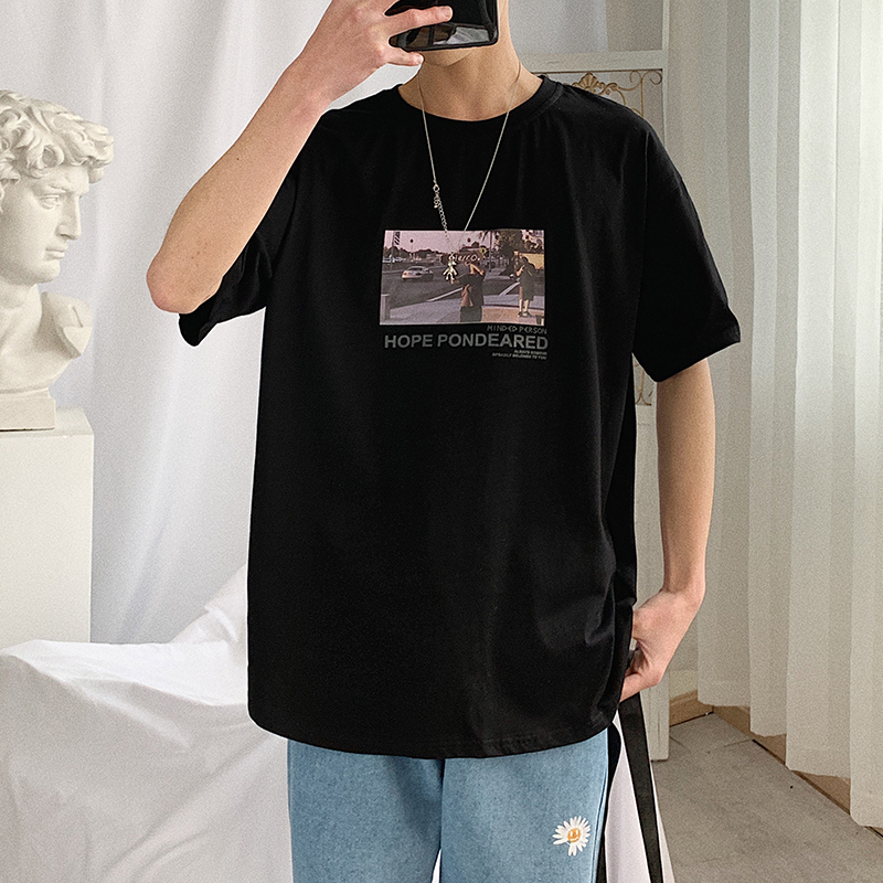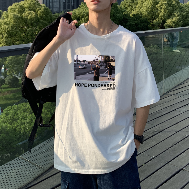 这款t恤是简约的风格,宽松的版型,时尚百搭,胸前的字母印花,很有个性,搭配牛仔裤或者短裤都很好看。