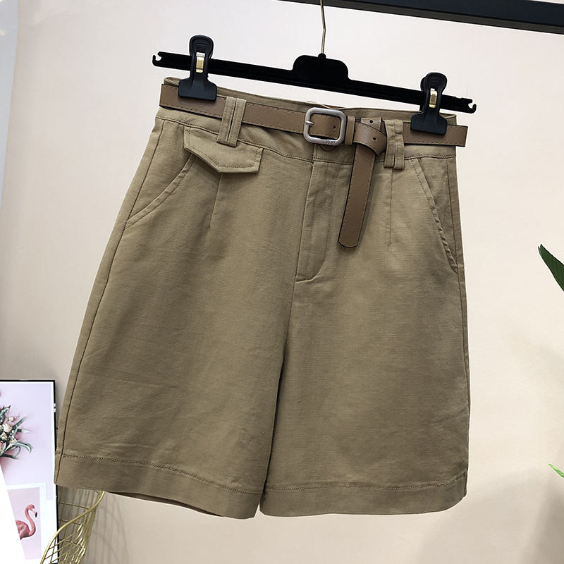 高腰的设计,拉长腿部线条,显瘦效果很好,高腰的版型,很显高挑,修身的剪裁,修饰腿部曲线,上身很有范。