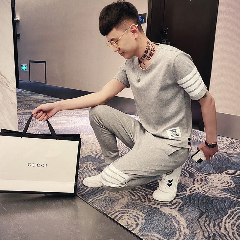休闲T恤,让你轻松驾驭,纯棉材质,穿着舒适透气,圆领设计,凸显绅士风度,套装设计,省去搭配烦恼。