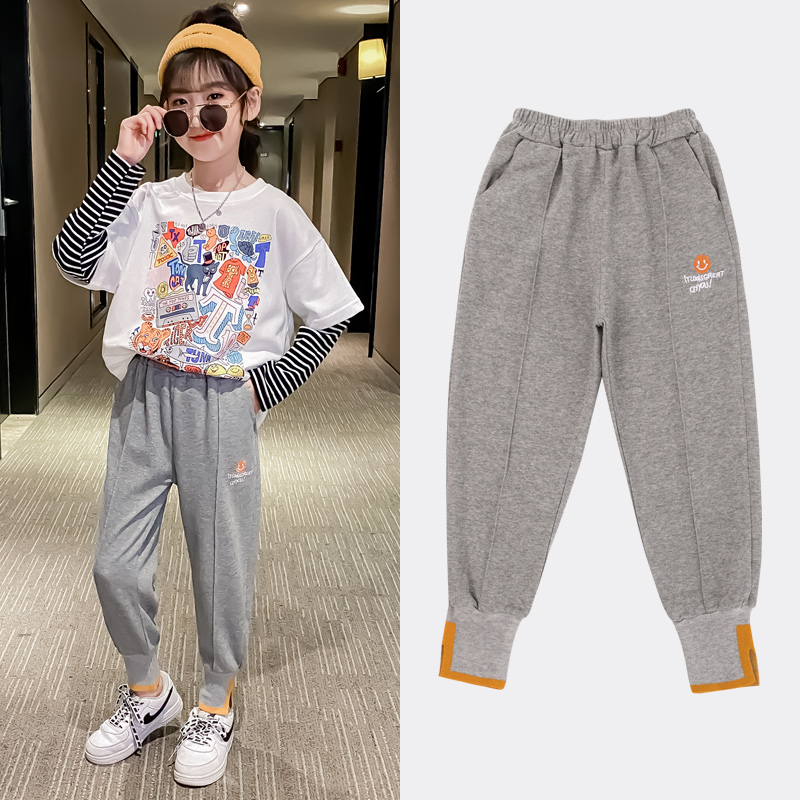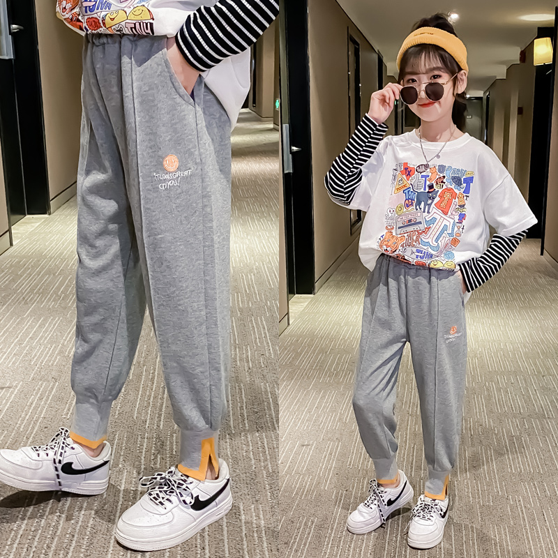 这条衣服面料舒适,弹力的质感。宽松裤型和九分裤的版型,可以轻松修饰身材线条,让宝贝轻松拥有女神风格。