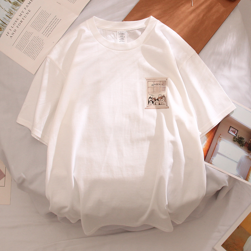 这款t恤是简约的风格,宽松的版型,时尚百搭,胸前的字母印花,很有个性,搭配牛仔裤或者短裤都很好看。