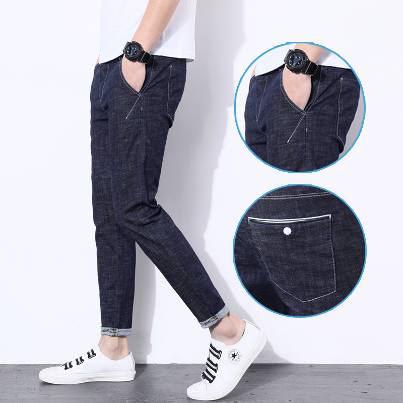 高腰设计,拉长身材比例。高腰牛仔裤,显瘦显腿长。直筒裤型,修饰腿部线条。