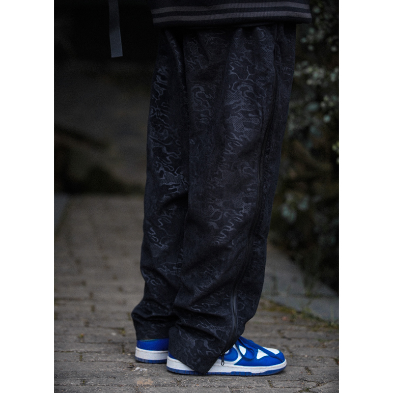 经典日系的迷彩阔腿版型,上身舒适自在,简约的设计,不失复古,九分的长度,露出脚踝,显瘦效果好,个性的条纹图案,彰显不羁街头范。