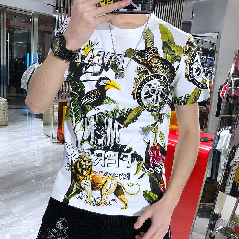 时尚的圆领领部剪裁,展现迷人锁骨线条,个性烫钻的印花图案,增添视觉层次,让整体看起来更加的个性。