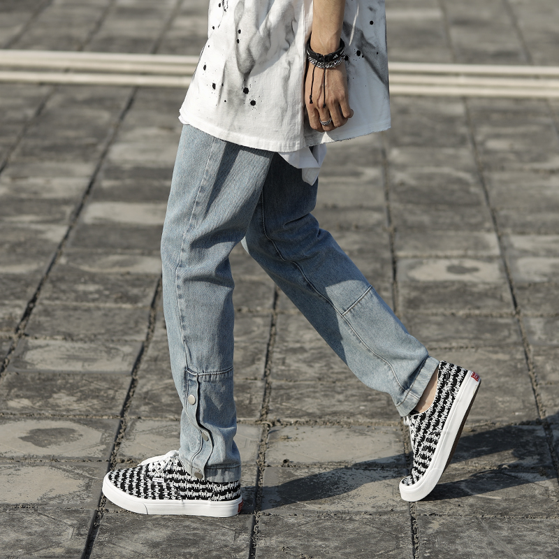 这款牛仔裤的设计很有特色,高腰的版型,很好的修饰了身材比例,显瘦效果很棒,搭配一件T恤,就能轻松穿出时尚感。