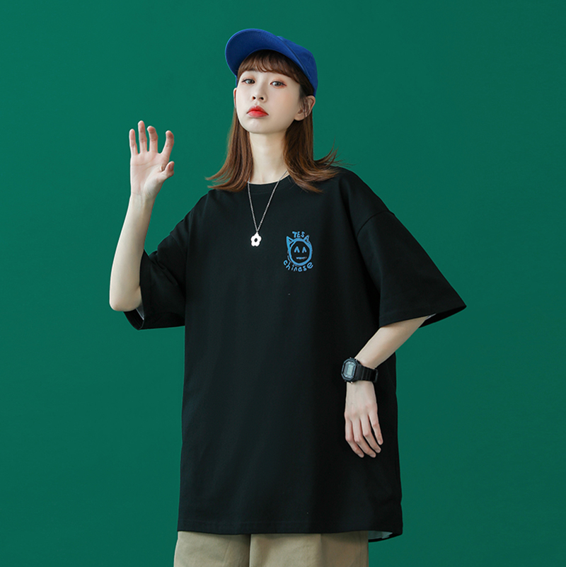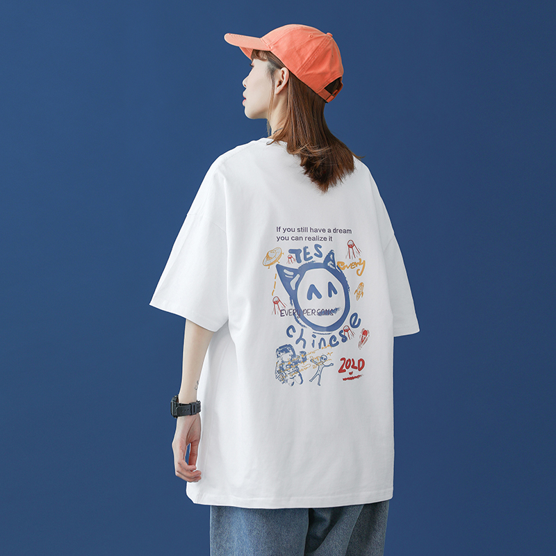 这款t恤是简约的风格,宽松的版型,时尚百搭,胸前的字母印花,很有个性,搭配牛仔裤或者短裤都很好看。