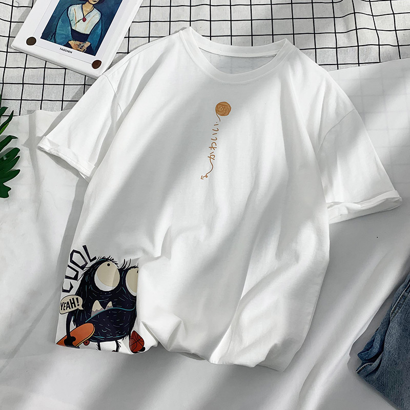 这款t恤是简约的风格,宽松的版型,时尚百搭,胸前的字母印花,很有个性,搭配牛仔裤或者短裤都很好看。