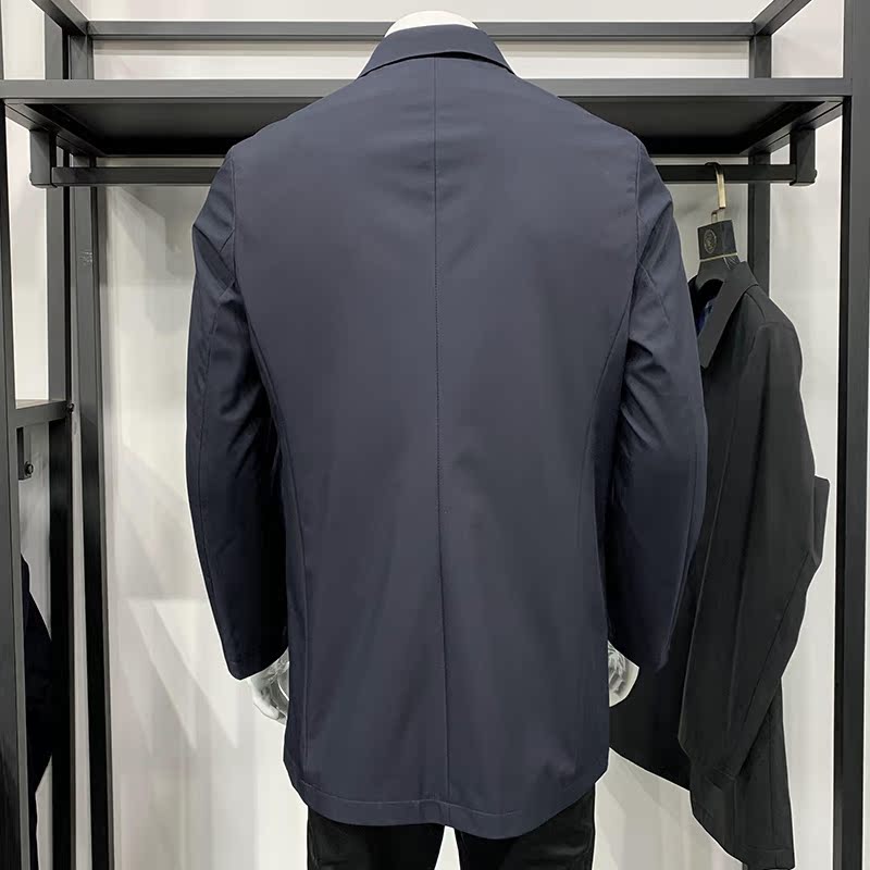 经典的圆领设计,舒适大方,简约的双排扣设计。