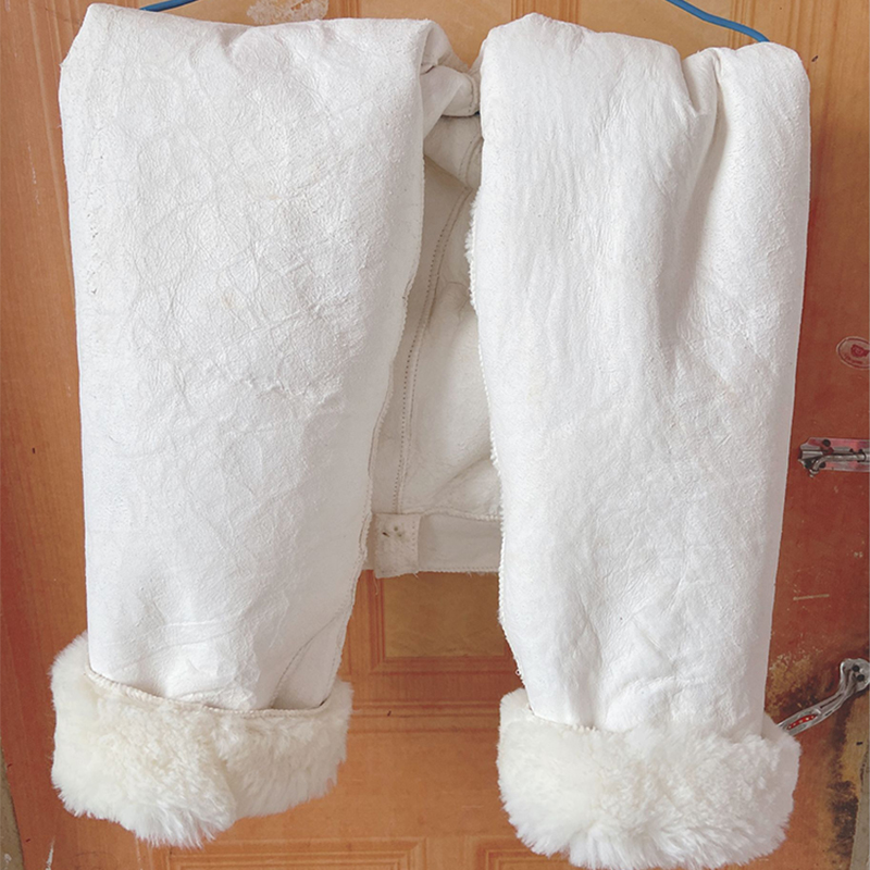 羊皮材质,穿着舒适保暖。皮裤版型,修饰腿部线条。高腰设计,拉长身材比例。
