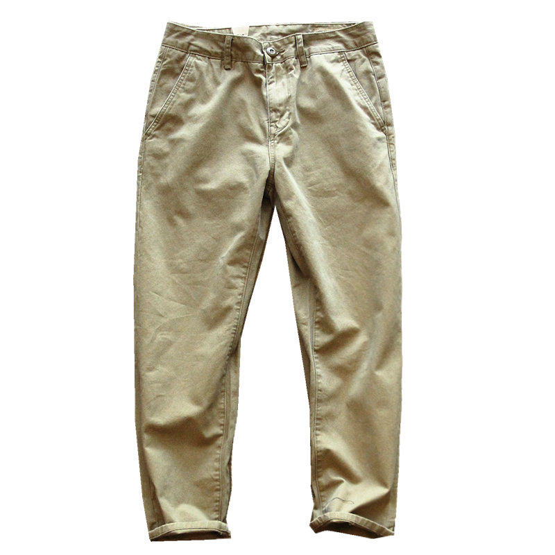 多口袋斜纹休闲卡其色工装束脚裤,采用纯棉牛仔布打造,触感细腻柔软穿着亲肤舒适。
