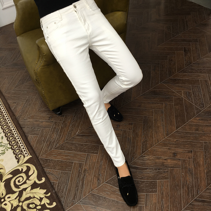 高腰的设计,拉长腿部线条,显瘦效果很好,高腰的版型,很显高挑,修身的剪裁,修饰腿部曲线,上身很有范。
