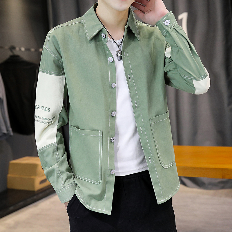 水洗做旧工艺,复古感十足,衬衫翻领,修饰颈部线条。短款的设计,拉长身材比例。