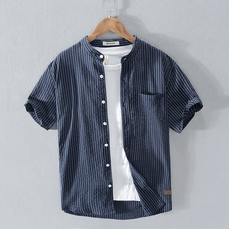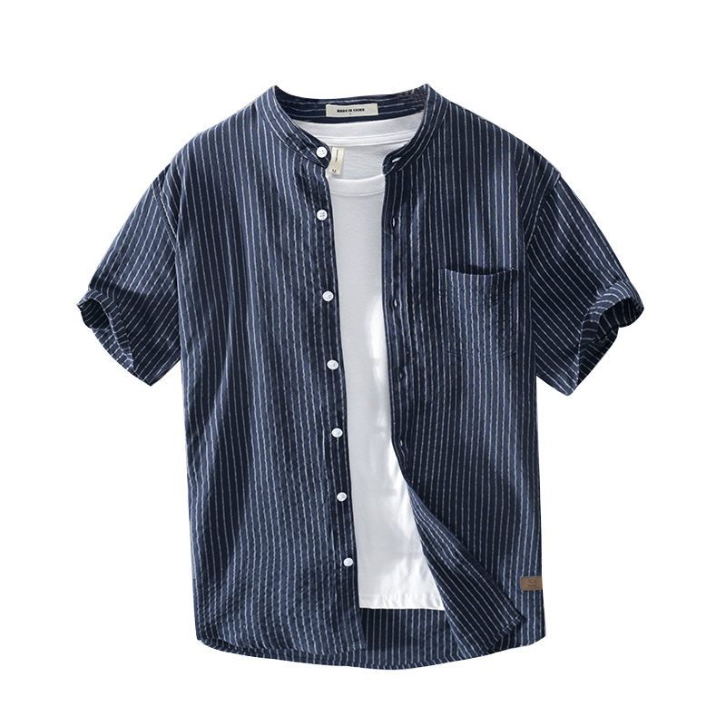 这款衬衣的设计比较的独特新颖,很有设计感。圆领设计适合大众脸型。胸前的撞色口袋拼接,增添层次。