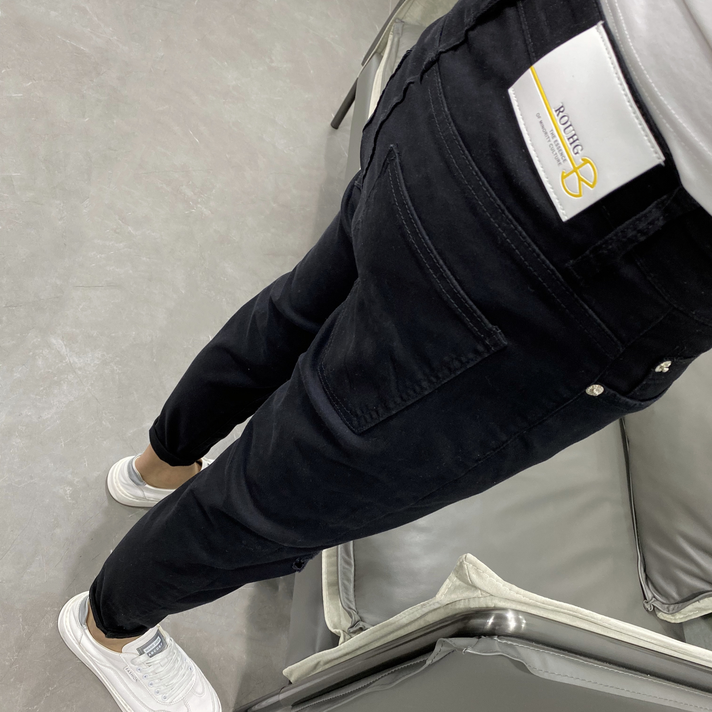 这款牛仔裤的设计很有特色,高腰的版型,很好的修饰了身材比例,显瘦效果很棒,搭配一件T恤,就能轻松穿出时尚感。