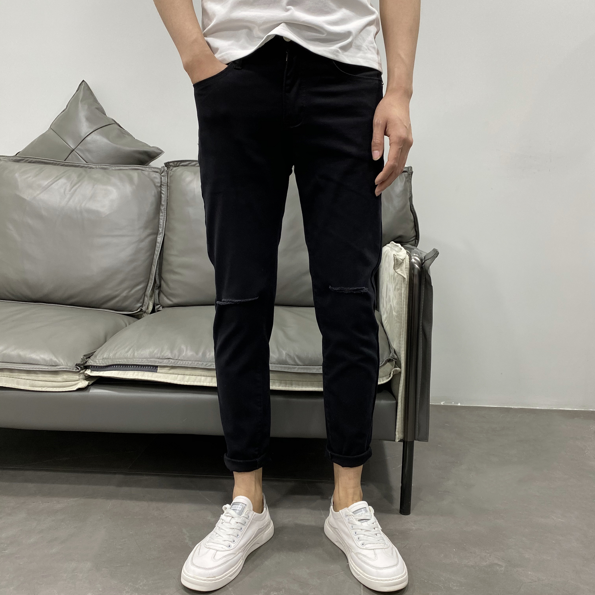 修身小脚裤采用优质棉质面料制作,柔软有光泽,富有很好的吸湿透气性能。