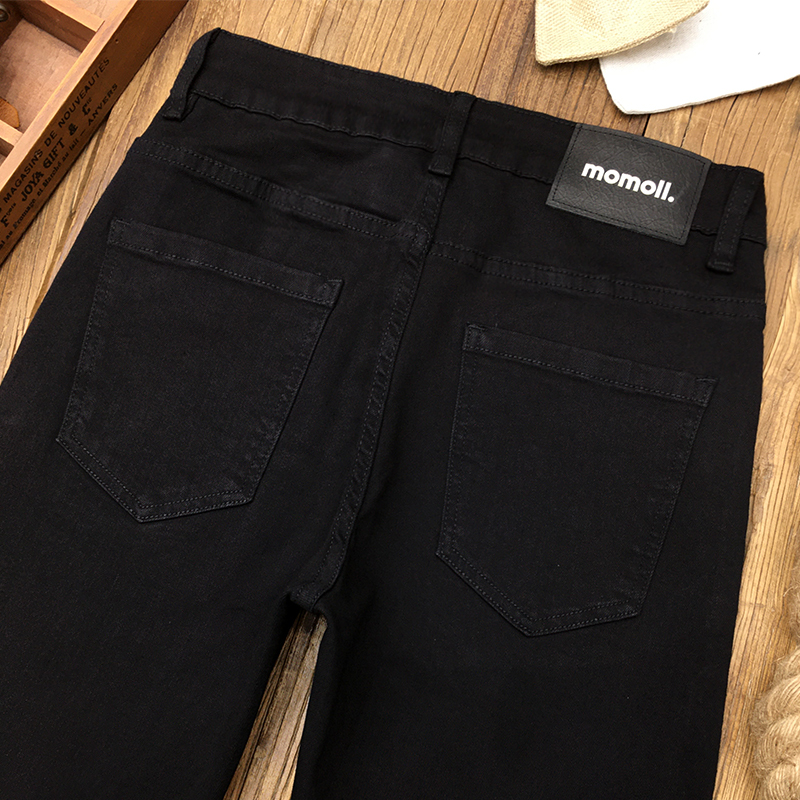 高腰设计,拉长身材比例。高腰牛仔裤,显瘦显腿长。直筒裤型,修饰腿部线条。