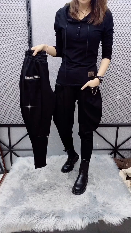 高腰的设计,拉长腿部线条,显瘦效果很好,高腰的版型,很显高挑,修身的剪裁,修饰腿部曲线,上身很有范。