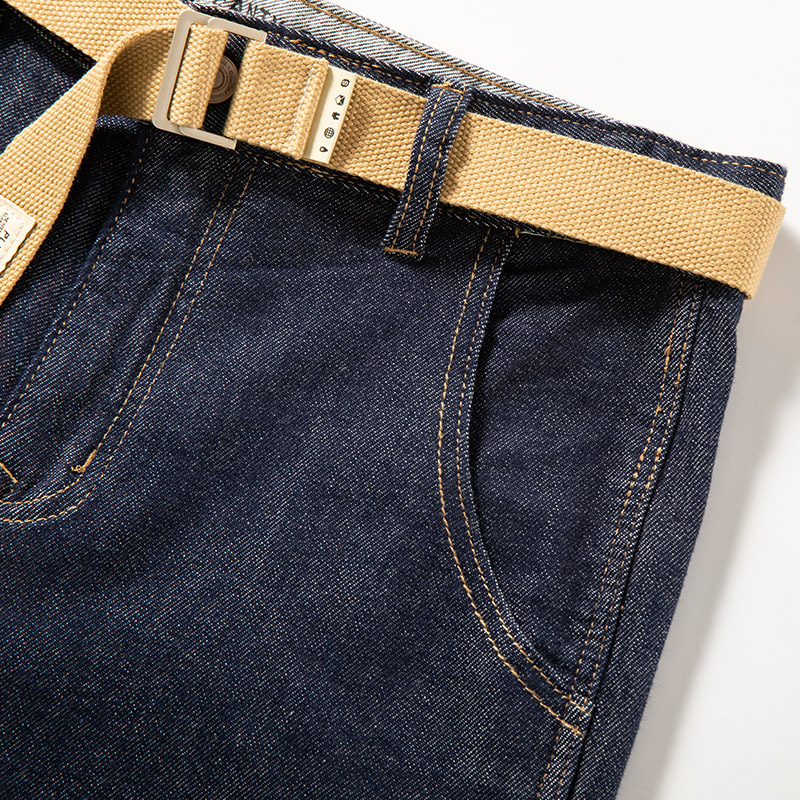高腰设计,拉长身材比例。高腰牛仔裤,显瘦显腿长。直筒裤型,修饰腿部线条。