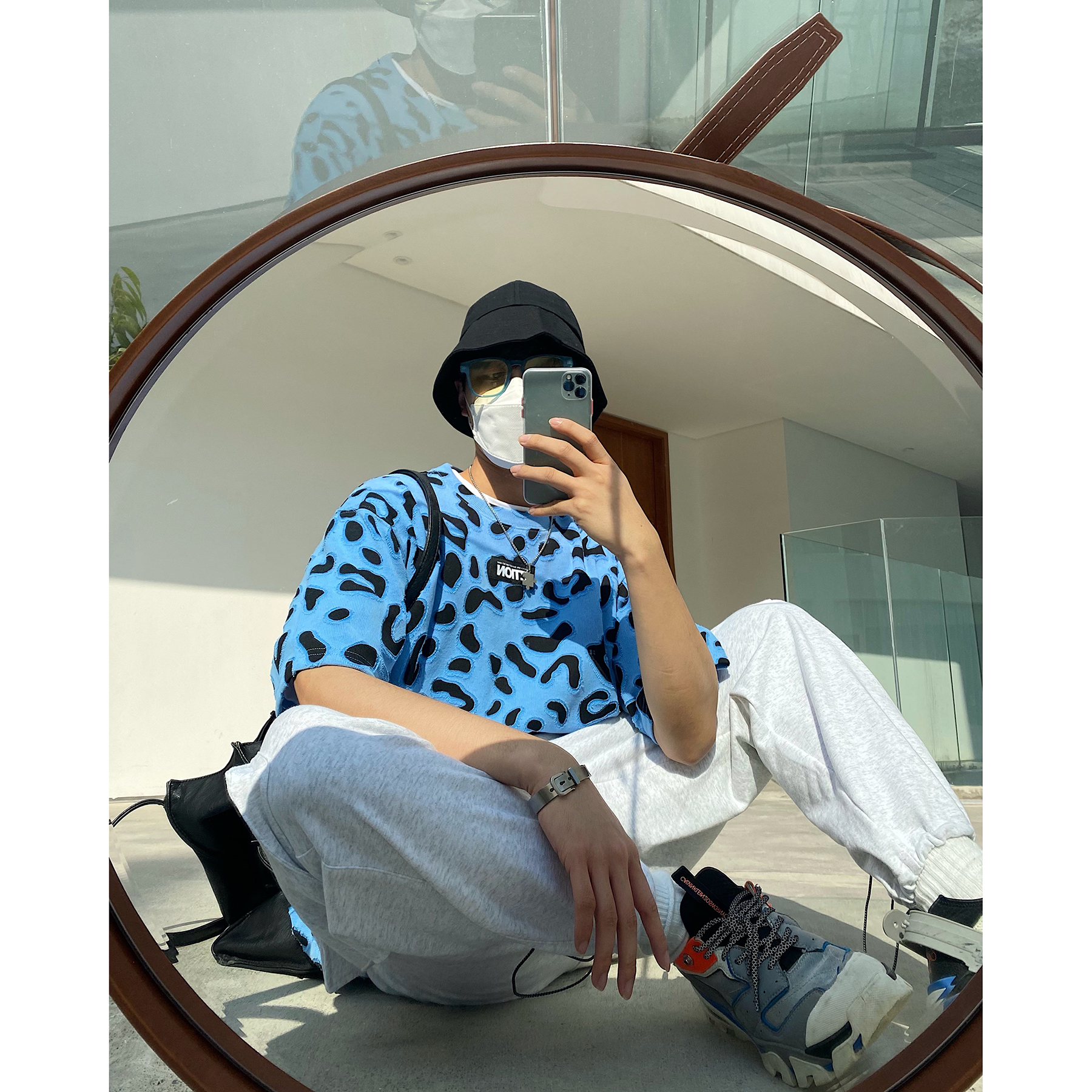 简约的高腰设计,搭配上修身的版型,上身显瘦又显高。