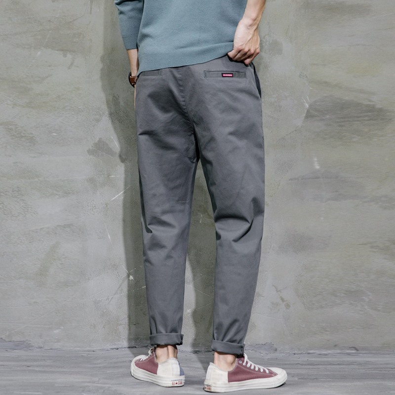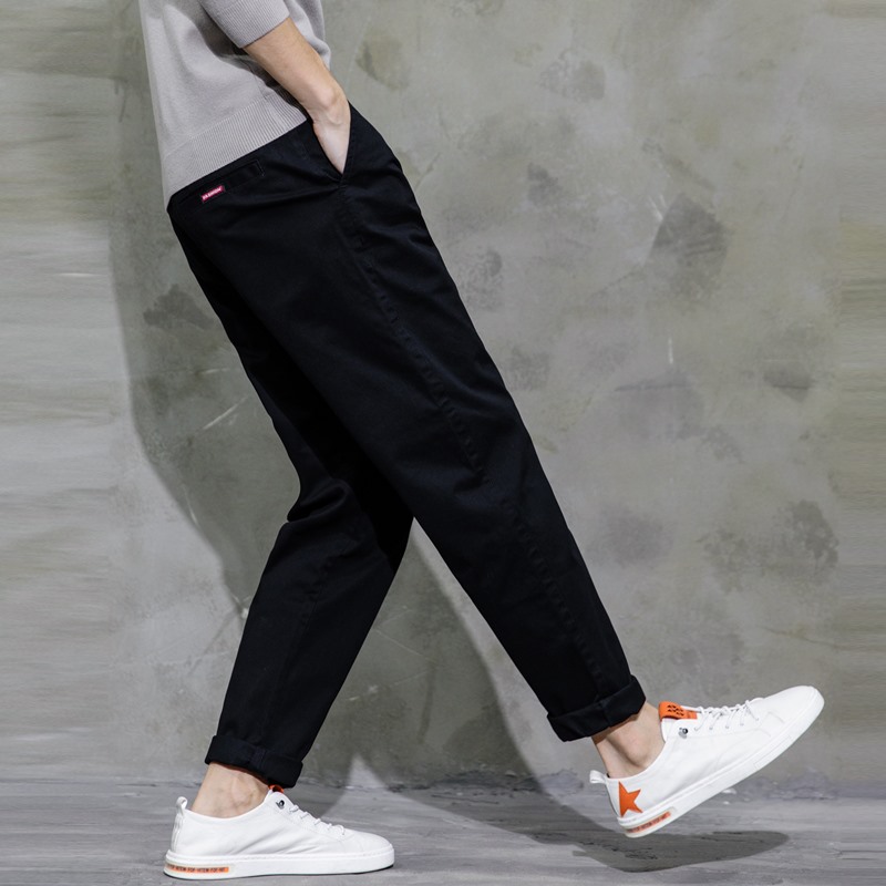 裤身采用了束脚版型设计,修饰男士纤细腿型,尽显你的型男气质。宽松直筒裤款式,穿着舒适自在。