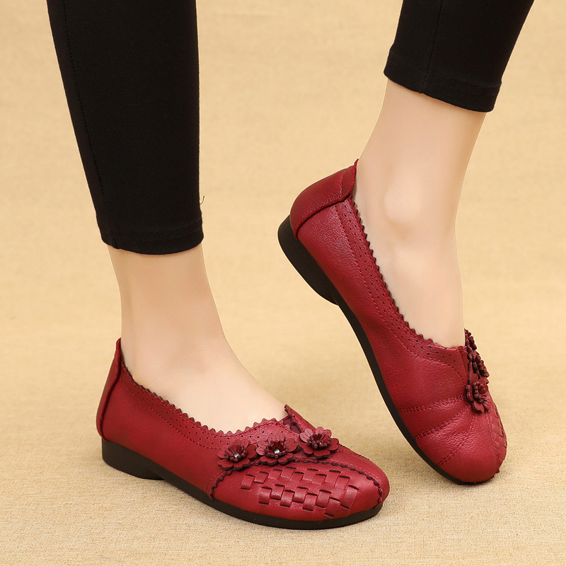 复古的盘扣设计,让你的脚部更加的纤细,优雅的粗跟,穿起来很舒服,平底的设计。