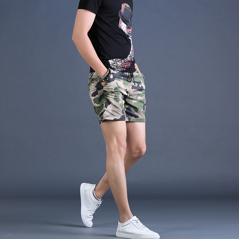 时尚迷彩风的宽松裤子。迷彩军旅风,尽显野性魅力。短裤版型,修饰腿部线条。