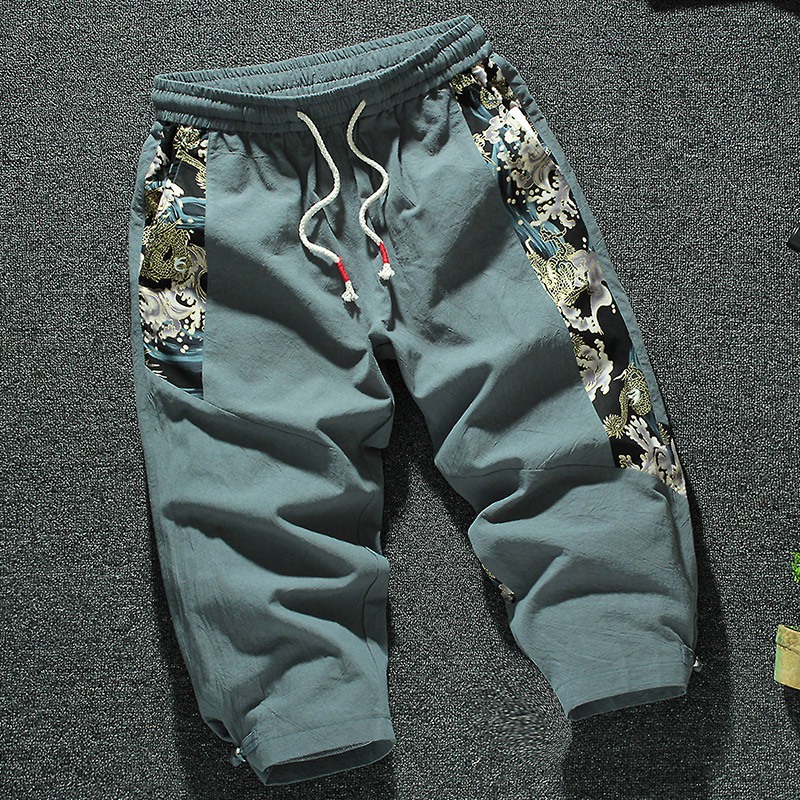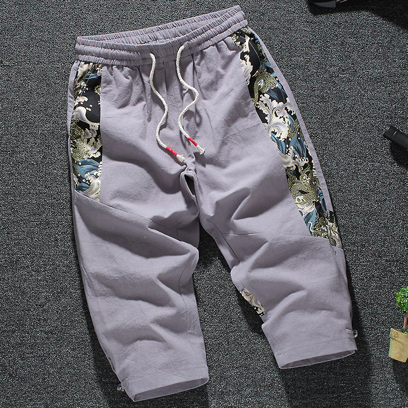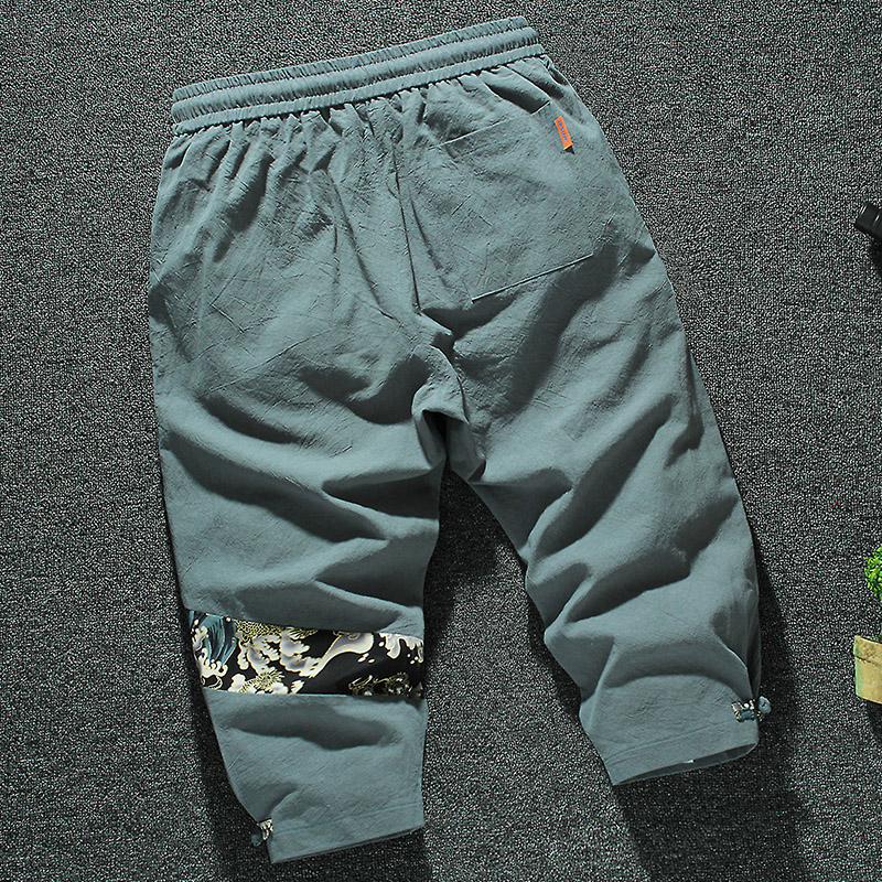 这款工装裤的版型是那种休闲运动风的设计,上身舒适自然,棉麻的面料也很透气,两侧的口袋实用方便。