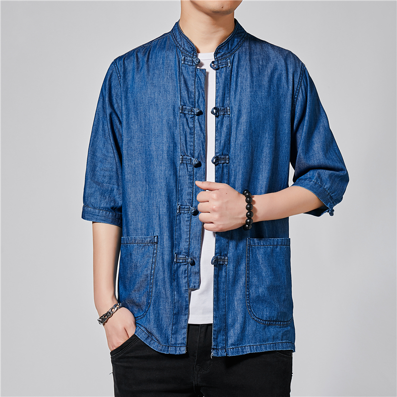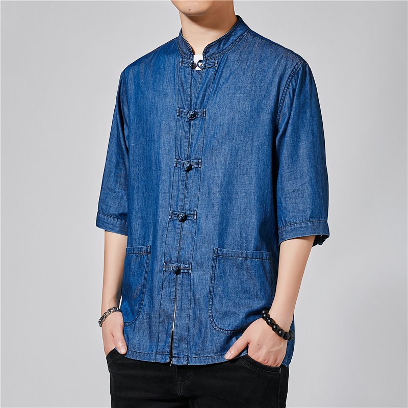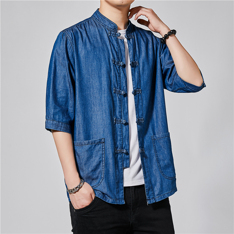 五分袖修饰手臂曲线,宽松版型,穿着舒适自在,牛仔面料,舒适透气,五分袖设计,复古感十足,复古印花,彰显时尚魅力,短袖设计,修饰手臂线条。