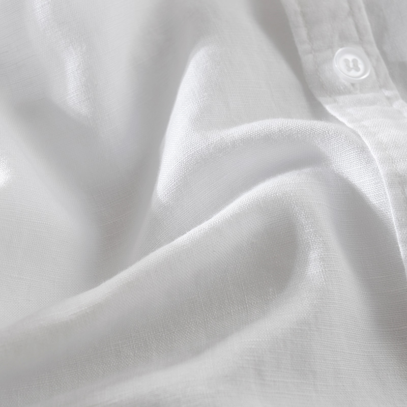 采用经典尖领版型,舒适不束缚。宽松的版型,穿着舒适自在。优质的亚麻面料,上身舒适亲肤。