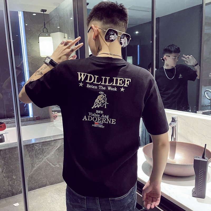 这款t恤是简约的风格,宽松的版型,时尚百搭,胸前的字母印花,很有个性,搭配牛仔裤或者短裤都很好看。