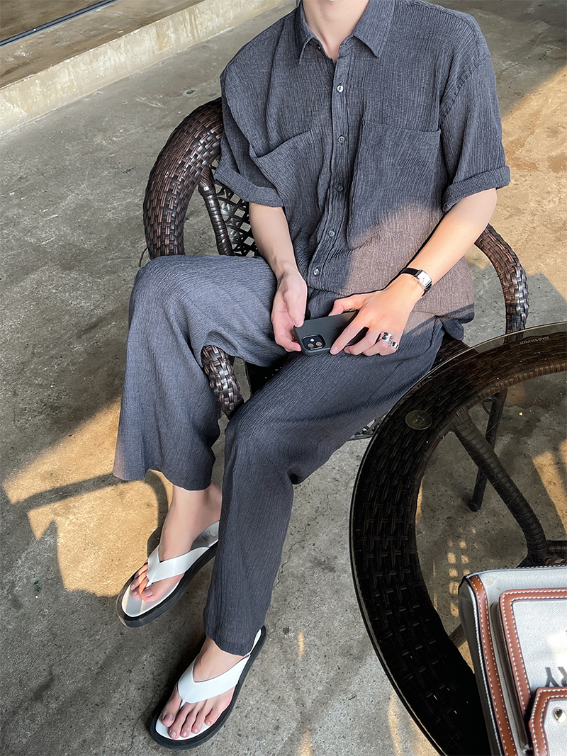 简约的高腰设计,搭配上修身的版型,上身显瘦又显高。