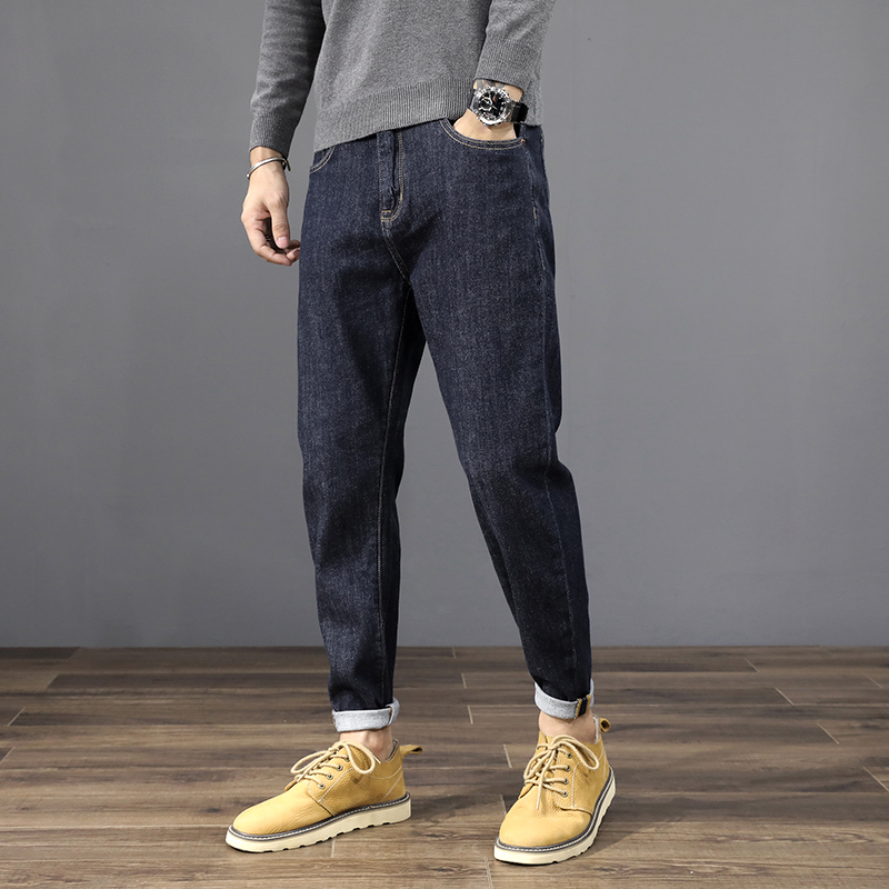 高腰设计,拉长身材比例。高腰牛仔裤,显瘦显腿长。直筒裤型,修饰腿部线条。
