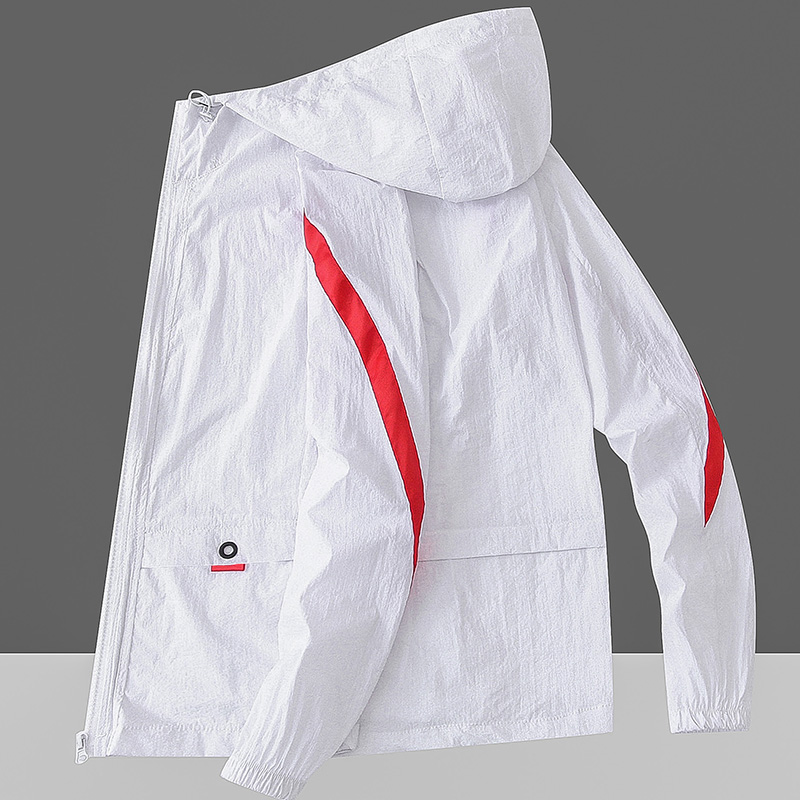 肩处撞色条纹的点缀,打破原本的单调,为整体带来更多的吸睛力,袖口处收紧的造型,紧贴手腕肌肤,能够起到更好的防风作用。