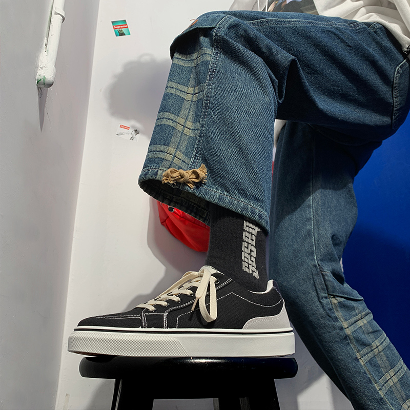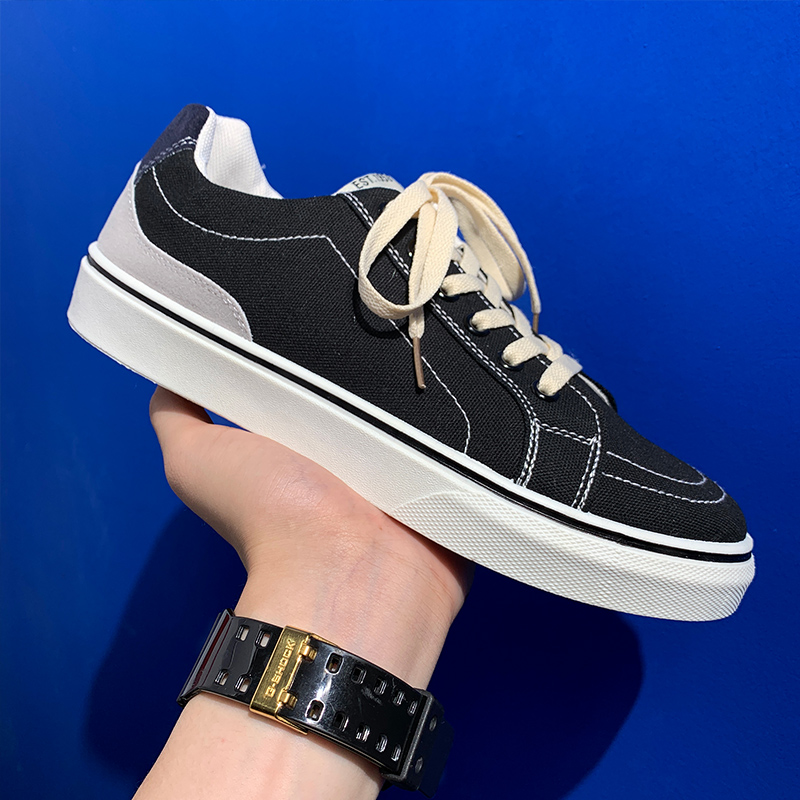 帆布拼接的鞋身设计,让鞋款看起来有层次感,时尚。