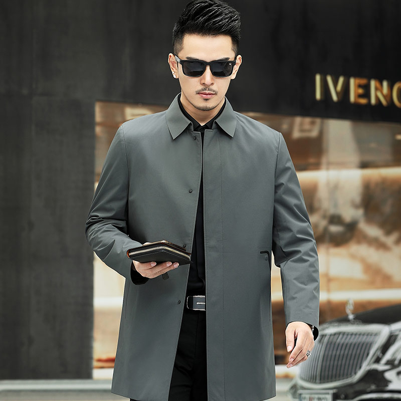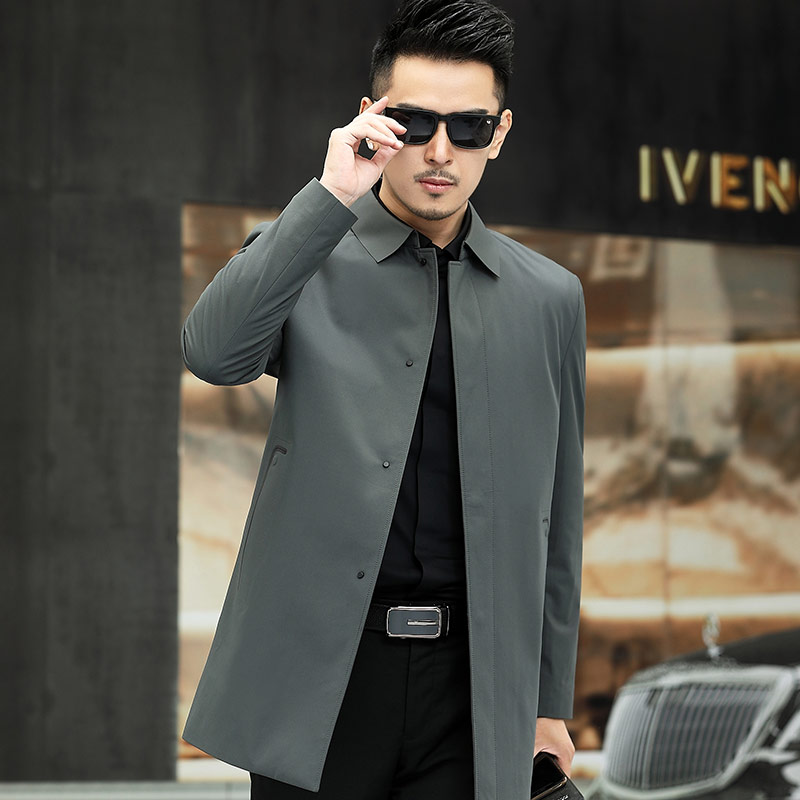 风衣采用西装领的设计,不仅能很好的修饰颈部线条。中长款的长度能够巧妙拉长腿部的比例,尽显男性的气质。