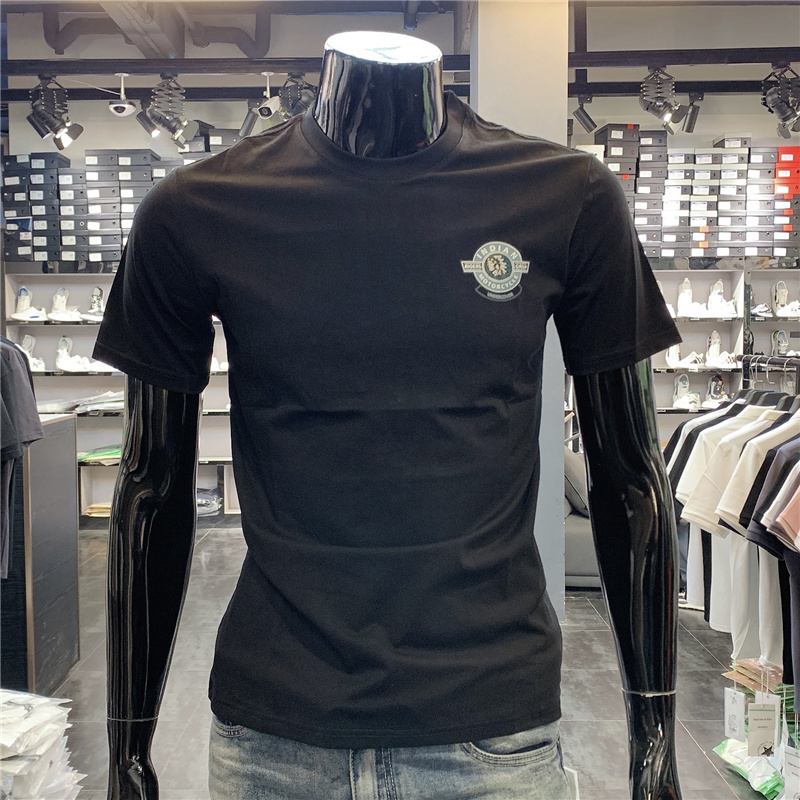 圆领设计,衬托颈部线条,修身的版型,不挑身材,穿起来舒适自在,休闲的设计风格,潮流百搭,短袖设计,修饰手臂线条。