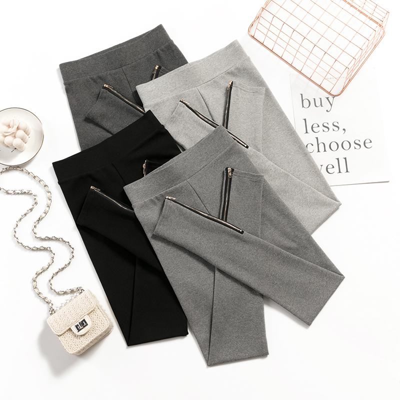 高腰的设计,拉长腿部线条,显瘦效果很好,高腰的版型,很显高挑,修身的剪裁,修饰腿部曲线,上身很有范。