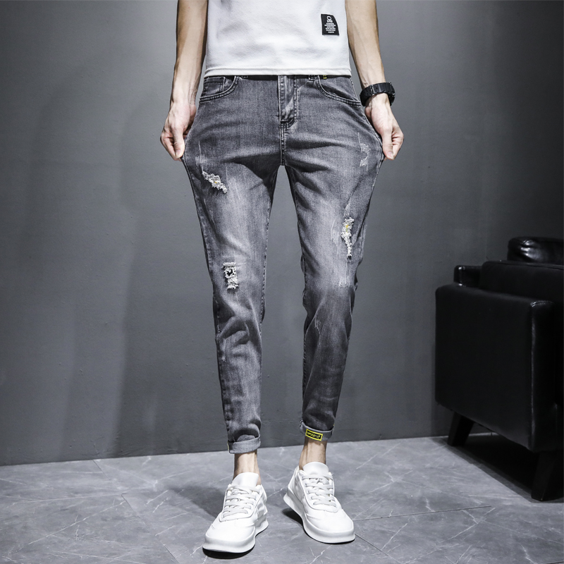小脚裤型,休闲时尚百搭。弹力面料,穿着舒适透气。小脚的款式,显瘦又显高。
