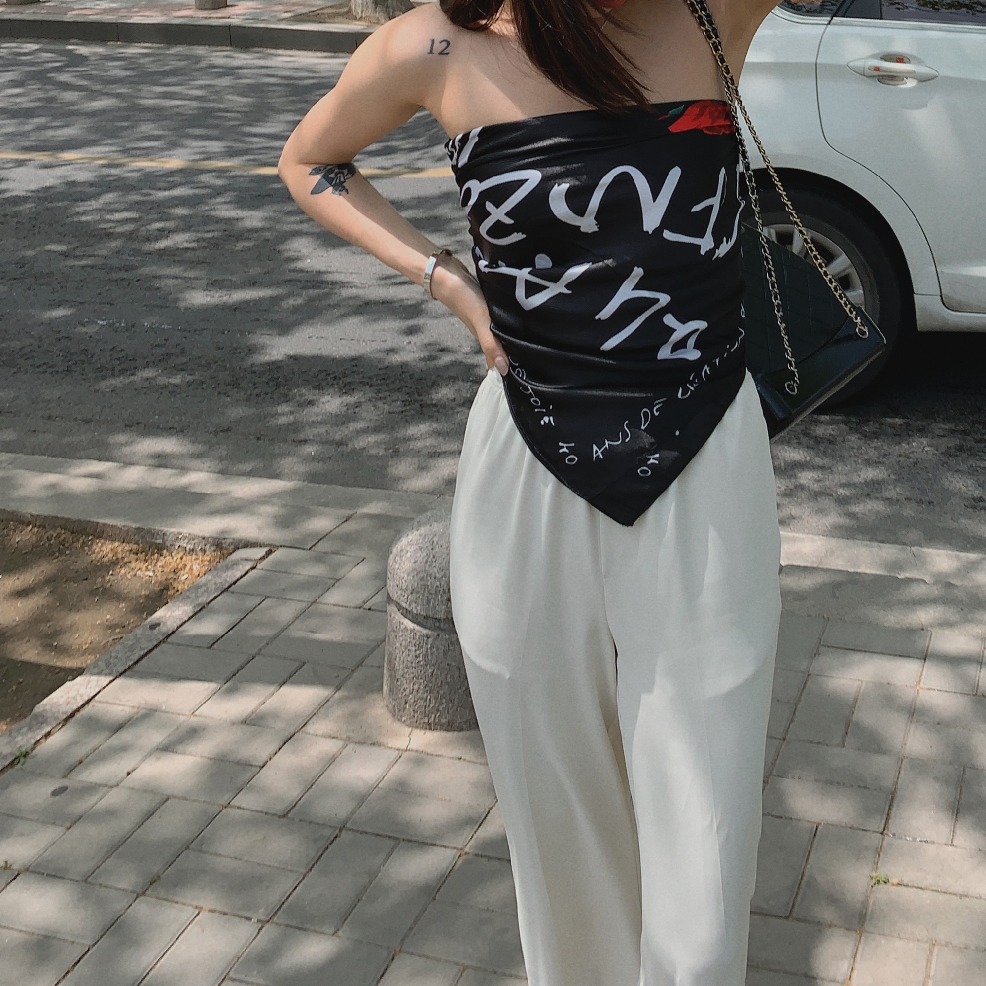 高腰的设计,拉长腿部线条,显瘦效果很好,高腰的版型,很显高挑,修身的剪裁,修饰腿部曲线,上身很有范。
