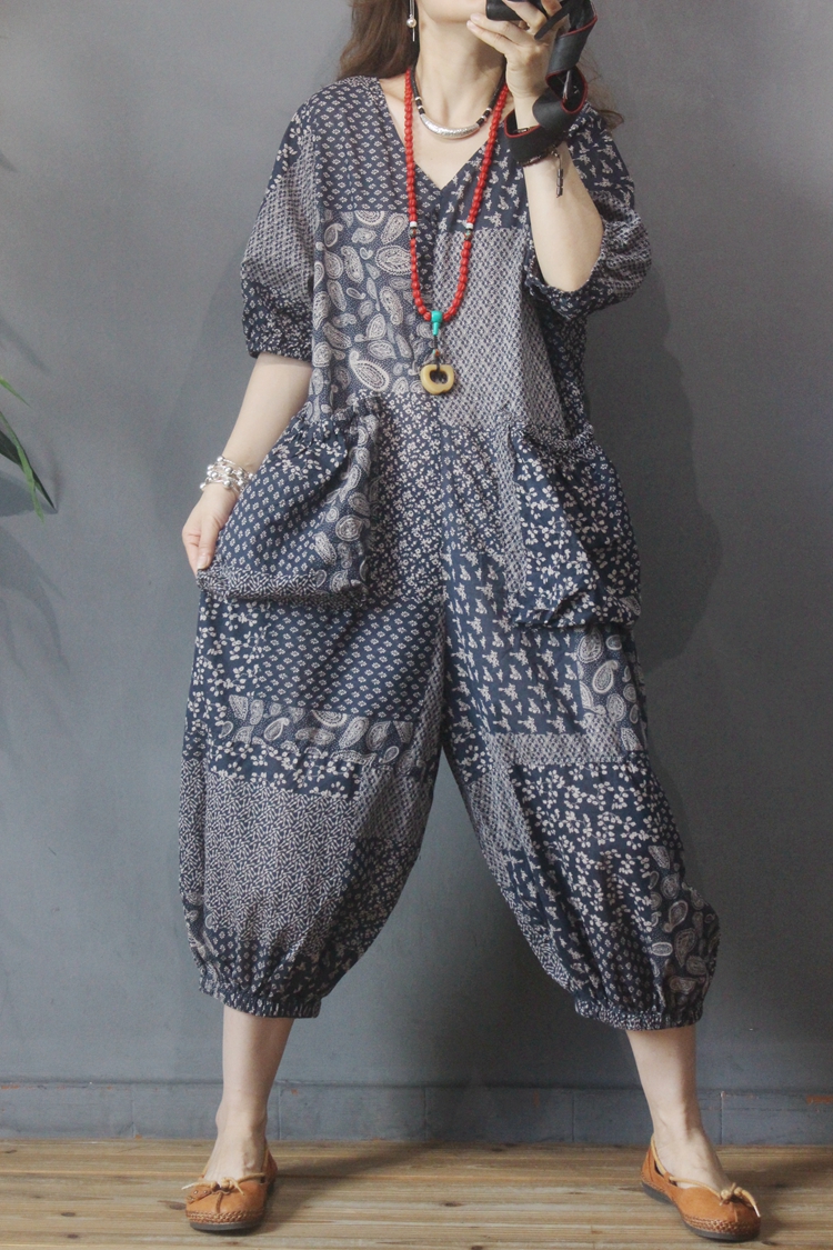 印花设计,清新又减龄,V领设计,修饰脖颈曲线,宽松裤,不挑身材穿着,原创设计,让你彰显个性。