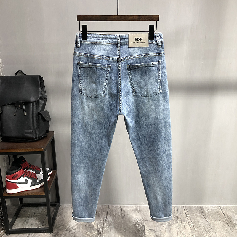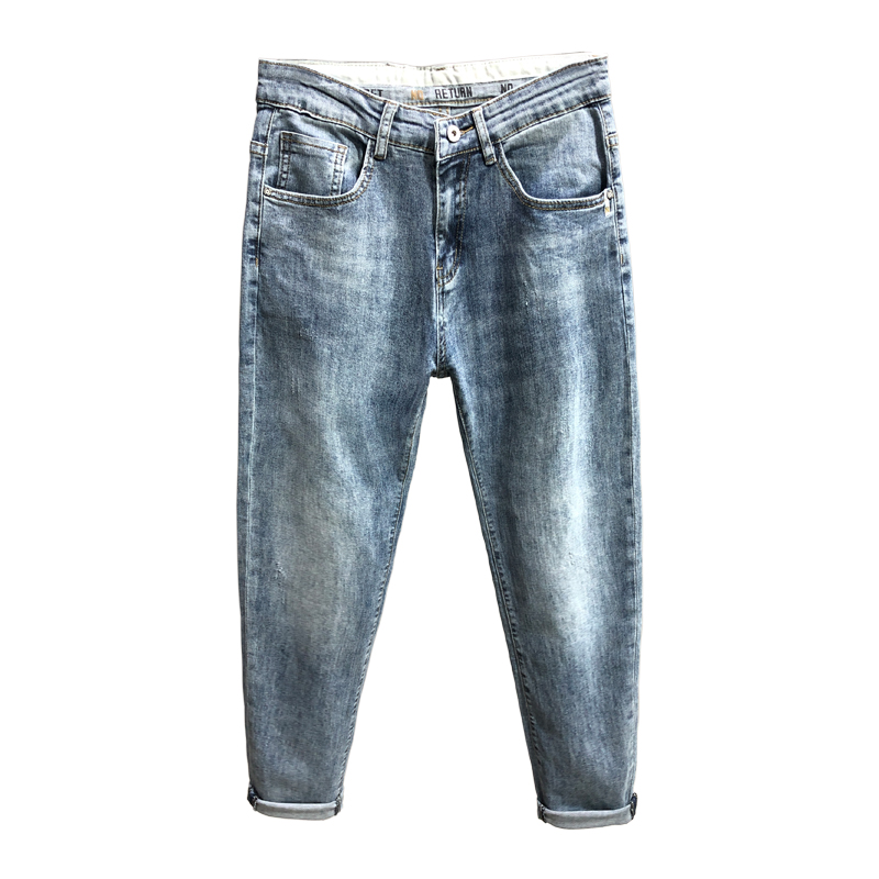 高腰设计,拉长身材比例。高腰牛仔裤,显瘦显腿长。直筒裤型,修饰腿部线条。