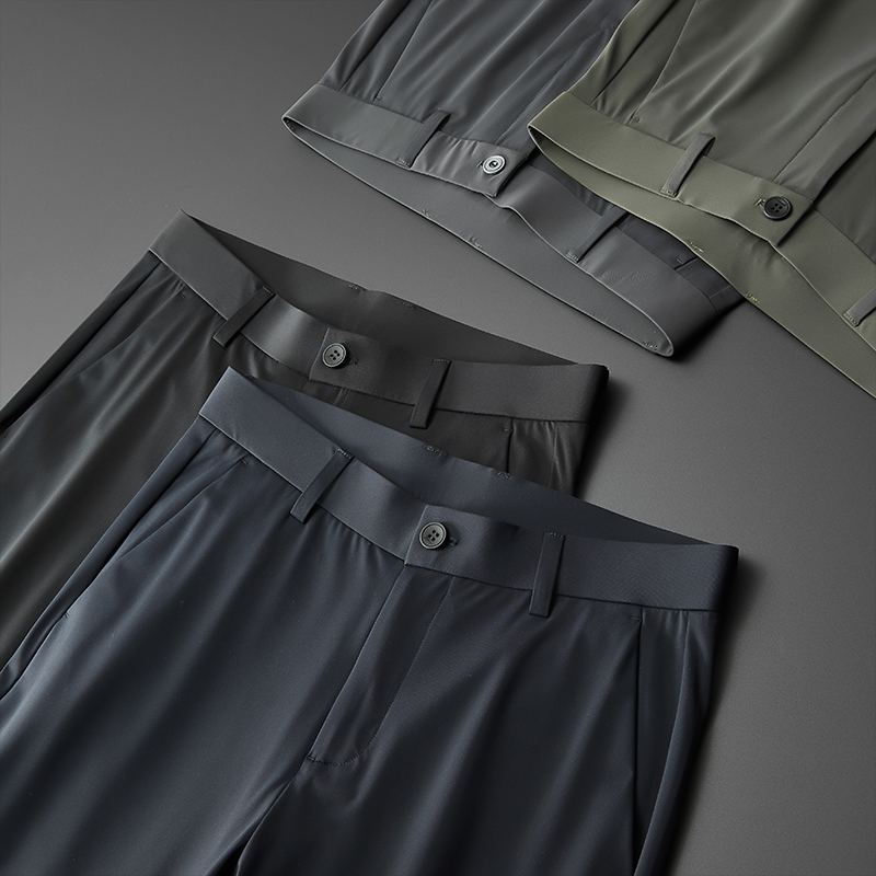 立体修身版型,上身很显瘦,冰丝面料,手感细腻,宽松的裤型,穿着舒适自在,长裤版型,修饰腿部线条,休闲时尚,适合各种场合,薄款设计,穿着舒适透气。
