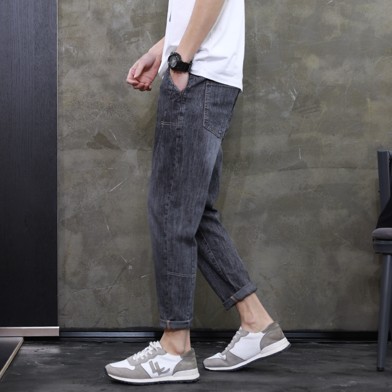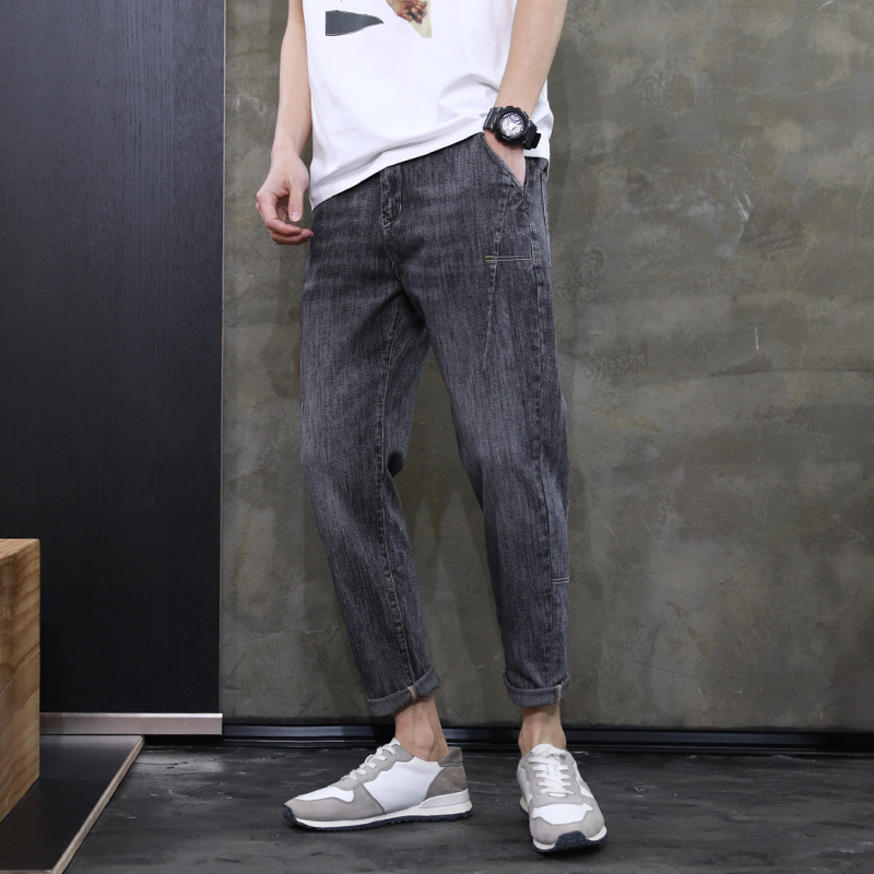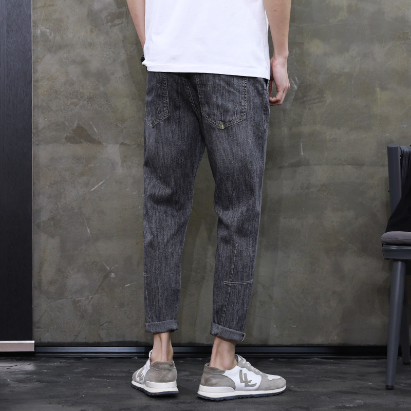 采用水洗破洞牛仔布面料,带有复古时尚的气息。九分的设计,让腿部线条被提高。